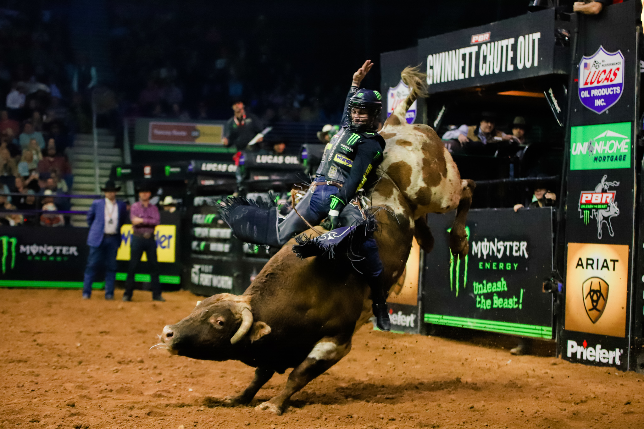 In front of an electric Saturday night crowd at Gas South Arena, two-time PBR (Professional Bull Riders) World Champion Jess Lockwood (Volborg, Montana) was triumphant in his premier series return, tying for the Round 1 win at the Gwinnett Chute Out alongside surging young gun Koltin Hevalow (Smithville, Missouri).